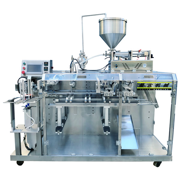 全自動(dòng)水平式給袋包裝機(jī)是包裝類似方便食品調(diào)料包袋型樣式可設(shè)計(jì)為三邊封或背封,包裝材質(zhì)多為單層或多層復(fù)合薄膜。食品調(diào)味料多趨向于多品種小批量生產(chǎn),可以根據(jù)物料特點(diǎn)、包裝規(guī)格選擇相應(yīng)的包裝機(jī)型。袋裝液體自動(dòng)包裝機(jī)采用蠕動(dòng)泵計(jì)量,物料輸送管道一端與料桶相連一端深入制袋模具中,整個(gè)包裝過程中液體產(chǎn)品不與設(shè)備接觸潔凈衛(wèi)生,可用于醬油、生抽、食醋、調(diào)味油等產(chǎn)品的定量包裝。大袋液體膏體的包裝需要采用活塞泵計(jì)量,袋型多為背封袋,如番茄醬、芥末醬、花生醬、芝麻醬等膏體醬料。