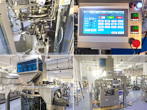 2、定位:給袋式顆粒包裝機采用伺服電機+滾珠絲杠/齒輪齒條傳動,位置控制精度極高。