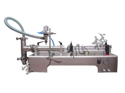 該機(jī)為半自動(dòng)活塞式液體灌裝機(jī)。