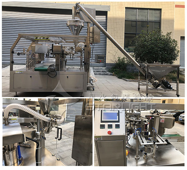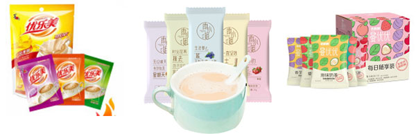 全套奶茶粉劑自動(dòng)包裝機(jī)設(shè)備樣品展示