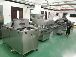 通過瓶子從輸送帶上走到灌裝工位,進行醬體的填充,然后由自動取蓋器,自動上蓋并預選緊。較后由真空旋蓋工位進行較終的抽真空旋蓋。
